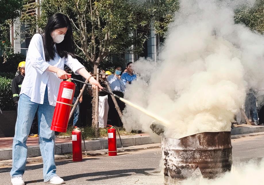 本次演練分為滅火救護與逃生疏散、消火栓出水模擬及手提式干粉滅火器教學實操。火災警報發出后,辦公樓所有人員用濕毛巾捂住口鼻,有序疏散至安全指定地點,無踩踏、擁擠等情況發生;工作人員在險情發生的第一時間做出響應,按照分工迅速進行疏散、救援、滅火,消火栓出水測試水壓正常,噴射穩定有效;在工作人員的詳細指導下,員工參與滅火實操并總結使用技巧。