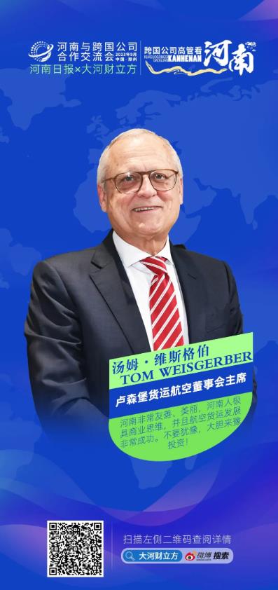 9月5日,盧森堡貨航董事會主席湯姆·維斯格伯前來鄭州參加河南和跨國公司交流合作會,同行的還有盧森堡貨航總裁兼首席執(zhí)行官理查德·福森,兩位負責人聯袂遠道而來,足見他們對河南的重視。