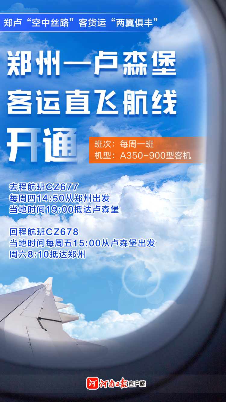 海報|鄭州—盧森堡客運直飛航線今日開通
