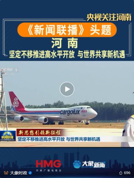 央視《新聞聯播》關注鄭盧“空中絲綢之路”