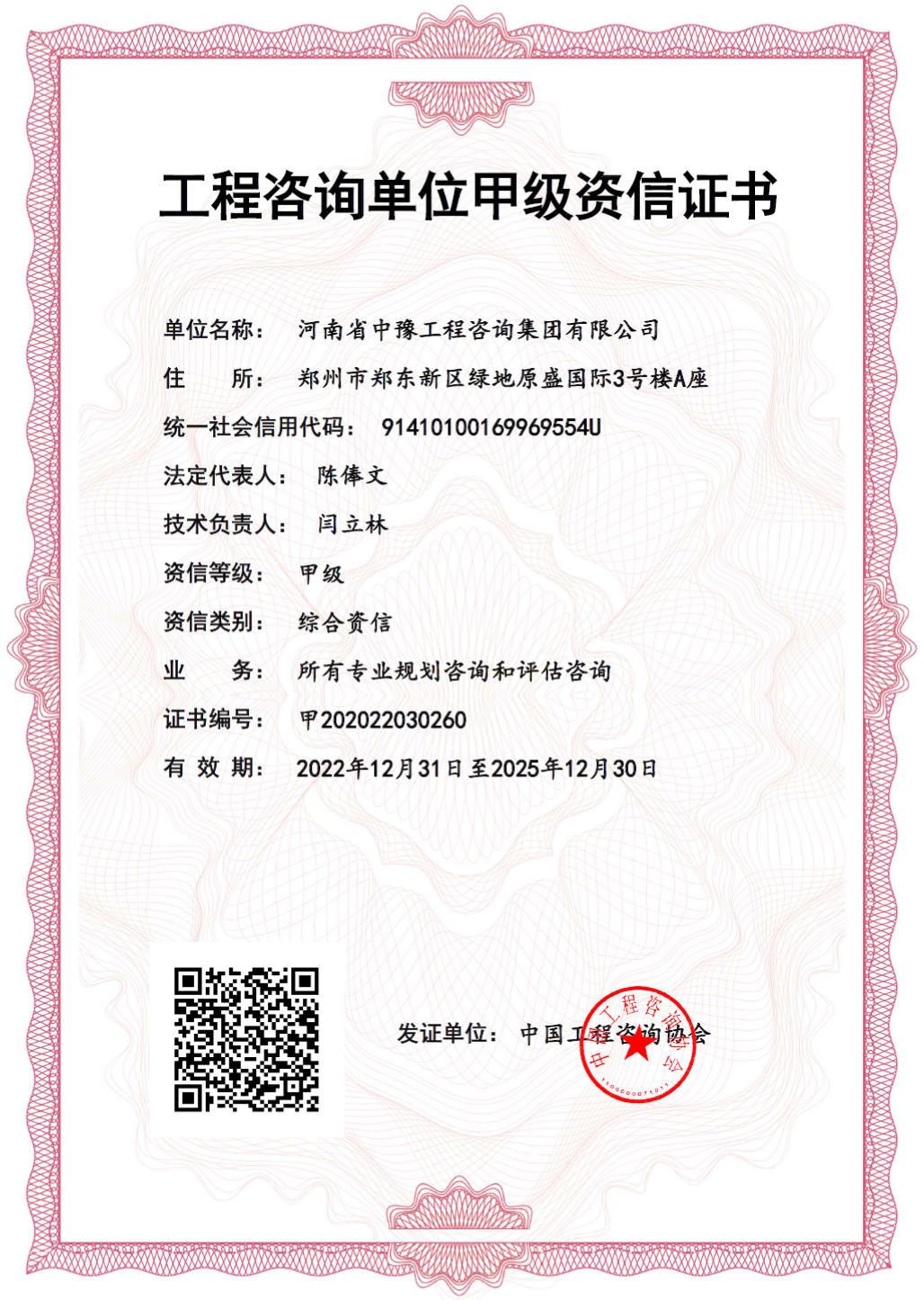 近日,中國工程咨詢協會對符合綜合甲級、專業甲級和專項資信評價標準的單位名單予以公告,河南航投集團旗下河南省中豫工程咨詢集團有限公司(以下簡稱中豫咨詢集團)成功獲得工程咨詢單位綜合資信甲級證書,新增了石化、化工、醫藥甲級專業資信,甲級專業數量和覆蓋面位列河南本土企業第一位。