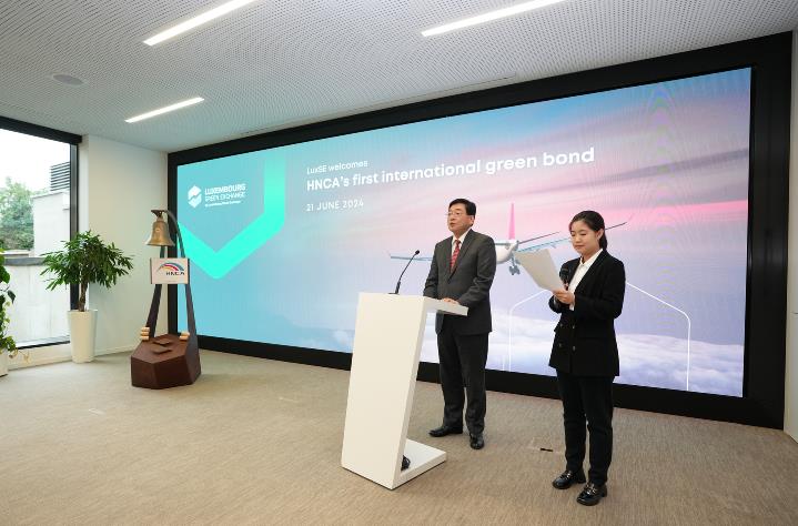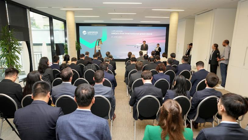 當地時間6月21日上午,中豫航空集團以河南航投為主體發行的3年期人民幣境外債券上市儀式在盧森堡證券交易所舉行。這是中國企業在歐洲發行的首支支持可持續航空燃料(SAF)的綠色債券,也是河南企業發行的首支離岸人民幣綠色債券,鄭盧“空中絲路”資金融通實現新突破。