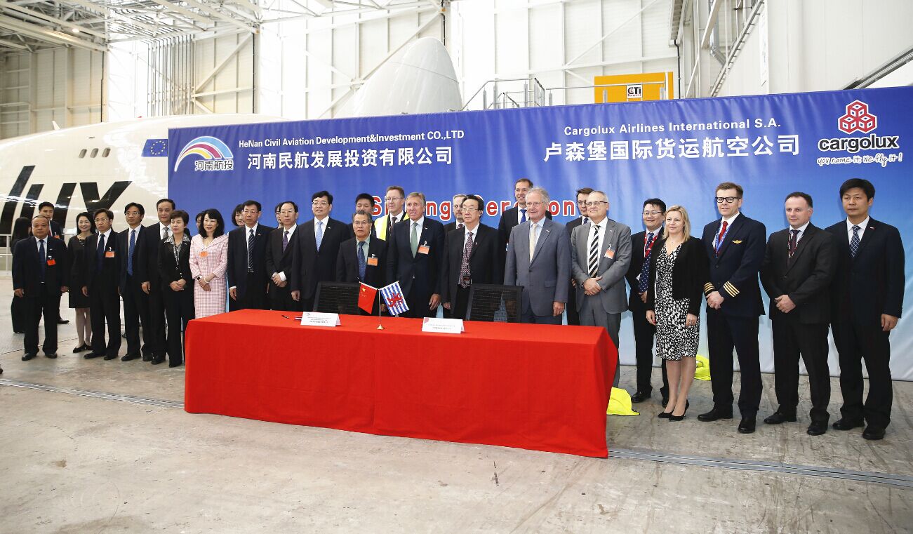 河南航投與盧森堡貨航簽署成立合資貨運航空公司及飛機維修公司協議